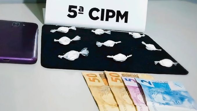 Durante busca pessoal, foram localizadas em seu bolso nove porções de substância análoga à cocaína, pesando ao todo 6g, acondicionadas e prontas para comercialização. Ainda, foi encontrado em sua carteira o valor em espécie de R$ 107,00.