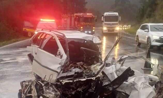 Um homem morreu e quatro pessoas ficaram feridas em uma violenta colisão entre um carro e um caminhão, na manhã dessa segunda-feira (23), na rodovia BR-153, em Porto Vitória-PR. O acidente ocorreu por volta das 6h40, no KM 471.